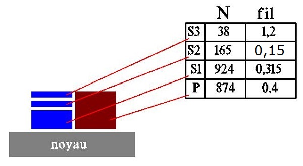 Le bobinage se fait à spires jointives (autant qu'on peut le faire à la main) ... voici un changement de couche :