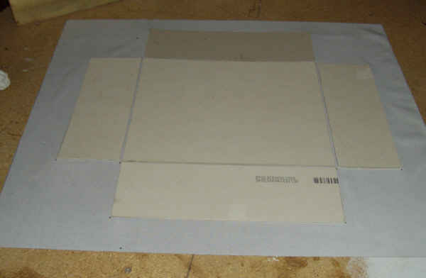 J'ai acheté du simili "vachette" sur ce site Pas cher et tout à fait de la même nuance ! J'ai donc commencé par découper des rectangles de carton pour toutes les faces des deux boites, et en double ! J'ai prévu 5 mm de plus que les dimensions des boites. Une fois collées les deux épaisseurs, j'ai étalé les 5 pièces de carton sur l'envers d'un rectangle de simili : puis je les ai collées à la colle à bois diluée 50/50, et pressées pendant une nuit. Voici le revêtement de la boite du fond prêt à être découpé : Voici, à titre indicatif, comment je vais faire les plis dans les coins : Tout d'abord, faire une découpe dans chaque coin, en conservant 15 à 20 mm de marge : Puis coller le simili sur l'intérieur du carton qui dépasse, bien presser à l'aide pinces (penser à interposer un carton côté extérieur pour ne pas marquer le simili !): procéder pour deux côtés opposés : et attendre la prise de la colle ... Découper le simili dans les coins : puis rabattre les marges en les encollant et en rentrant le pli : Faire de même pour l'autre côté et presser pendant la prise de la colle : Une fois la colle prise, le côté tient tout seul : coller alors sur l'intérieur du carton en ayant coupé à 45° le recouvrement : Voici le fond terminé : Procéder de même pour le couvercle :
