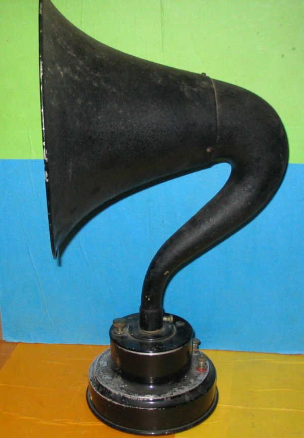 J'avais acheté, à Chartres, ce haut-parleur col de cygne : Sa marque est CIB : Le pied contient le moteur: Le raccordement se fait par 2 bornes (entourées en violet), le pavillon est fixé grâce à une vis (en vert) et il y a un réglage de l'entrefer (en jaune) J'ai entièrement démonté le pied; voici toutes les pièces : Entouré en violet, un condensateur de 6nF qui était connecté en parallèle sur la bobine intacte; en effet, une des 2 avait déjà été mise hors circuit (coupée). Voici quelques photos du moteur....le réglage de l'entrefer : Côté bobines, il ne reste plus que 2 fils, ceux de la bobine entourée en violet ont été coupés à ras : A gauche, la pièce polaire solidaire du cône qui est dans le champ de l'aimant et des bobines : Pour réparer, il faut déposer l'aimant et les bobines : puis tout démonter : Les 2 bobines ont un noyau de 9 x 2,5 mm. Pour les rebobiner, il faut un outillage (une mini bobineuse) que je vais construire. L'important est de respecter les dimensions des bobines d'origine, en particulier, je vais récupérer les 4 joues, mais les mandrins devront être refaits avec du papier enroulé collé. Voici la manivelle support de bobine : Elle est faite avec de l'epoxy cuivré, des clous, des vis pour bloquer le mandrin. Le mandrin installé fait environ 10 mm de long. La bobineuse est en fait un support en U qui tient la manivelle, ainsi que la bobine débitrice. Pour installer la manivelle, il faut l'insérer par sa pointe dans le trou du support : puis engager l'axe de manivelle dans la fente du support opposé : Lorsque la manivelle est positionnée à fond, un clapet vient la bloquer verticalement : Voici la bobineuse prête à servir : les 1000 premiers tours sont faits : J'ai bobiné 2500 tours de 1/10; la résistance est alors de 250 ohm environ. Normalement, le fil est plus fin ce qui donne plus de tours et une résistance plus grande. En fait, pour le même espace disponible, la résistance est inversement proportionnelle à la puissance 4 du diamètre du fil. La bobine intacte faisait 2000 ohm, ce qui fait un rapport 8 avec celle que je trouve. Autrement dit, le diamètre d'origine était dans le rapport 1/8 à la puissance 1/4, soit : 0,6. Le diamètre du fil d'origine était donc du 6/100. J'aurais dû utiliser ce fil, mais j'ai décidé d'utiliser du 1/10 pour voir ce que ça donne réellement, quite à faire un transformateur adaptateur d'impédance (de rapport racine de 8)... Voici les 2 bobines réinstallées : J'ai dû meuler un peu les pièces triangulaires car j'ai fait les bobines un peu plus longues qu'à l'origine...zut. Ce n'est pas très grave, j'ai réussi à tout remonter et à dégager les 2 pointes au niveau de l'entrefer. Pour raccorder les 2 bobines, il faut les mettre en série, mais en opposition car elles sont sur chacun des 2 pôles de signes contraires; le plus simple est de connecter ensemble les débuts des enroulements, les raccords extérieurs se font sur les fins des enroulements. J'ai fabriqué une plaquette sur laquelle j'ai monté les 2 bornes d'origine : Les fils souples ont été torsadés sur quelques centimètres pour les maintenir en place : Voici les connexions : la jonction entre les 2 débuts des enroulements est isolée avec un bout de ruban adhésif (entouré en vert). L'essai est simple : il suffit de raccorder un générateur BF aux 2 bornes et ..... et ça marche ! En posant le pavillon, le son est relativement puissant, bien sûr. Il faut maintenant adapter le HP à la caisse .....