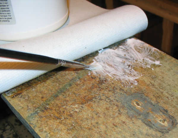 Il est temps maintenant d'installer toutes les pièces métalliques sur la caisse et les portes; en effet, cette opération doit être menée avant le collage du revêtement intérieur, pour cacher les clous de fixation. Pour chacune des portes, il y a 4 coins, 2 demi-paumelles et 2 demi-verrous; il faut les nettoyer. j'utilise de l'acide chlorhydrique avec un chiffon légèrement humecté, puis après rinçage énergique, je polis les surface à l'aide de laine d'acier. Voici ce que ça donne, à gauche : état initial, à droite : après nettoyage : Toutes ces pièces sont fixées à l'aide de clous de tapissier, dont la tête fait 6 mm environ, avec une finition "antique" : Les clous sont rabattus à l'intérieur à l'aide d'une pince: il faut maintenir la tête du clou pendant le rabattage. Cette opération assure un bon maintien du clou : sur la porte avant, il faut refixer la plaque signalétique, après polissage : J'ai utilisé des clous laiton à petite tête que j'ai également rabattus à l'intérieur : Les demi-paumelles mâles ainsi que les verrous doivent être également installés sur la caisse: Cette opération se fait avec la porte en position, en la maintenant bien pressée contre la caisse et en clouant les demi-paumelles. L'installation des verrous se fait ceux-ci fermés sur ceux de la porte : Il faut fixer la poignée de transport. Elle est en mauvais état, je devrais la refaire, mais pour l'instant, je peux provisoirement la fixer... Elle est maintenue par deux cavaliers en fer laitonné. J'ai dû fabriquer des boulons à tête ronde avec des clous de tapissier et des vis laiton soudées : Les trous des cavaliers ont été agrandis pour pouvoir faire passer les vis de 3 mm: A l'intérieur, il faut des rondelles très larges pour bien répartir le poids : Voilà comment se fixe la poignée : J'ai fixé 4 pieds en caoutchouc sous la caisse : voilà la caisse finie extérieurement : Les portes s'ouvrent en Z :