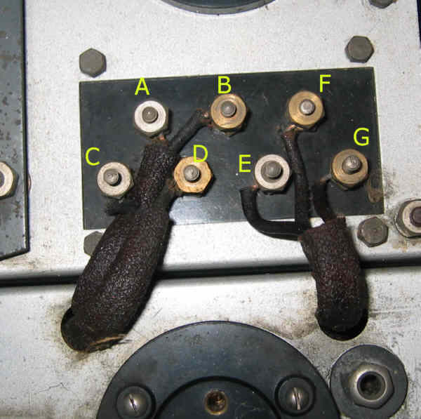 Il n'y a aucun accès sous l'ébénisterie pour intervenir sur le câblage des châssis, autrement dit, pour pouvoir réparer une panne (autre que changer une lampe), il faut sortir les châssis de la caisse ! Il faut commencer par dévisser les 11 connexions sur les 2 borniers : J'ai repéré chaque borne d'une lettre que l'on retrouvera sur les schémas Il faut dévisser les 6 écrous sous la caisse pour libérer les châssis, apèrs avoir enlever les boutons ! Ne pas oublier les 6 rondelles ... Il vaut mieux commencer par sortir le châssis alim, le plus lourd : Voici les deux châssis sortis de l'ébénisterie : (cliquez pour agrandir)