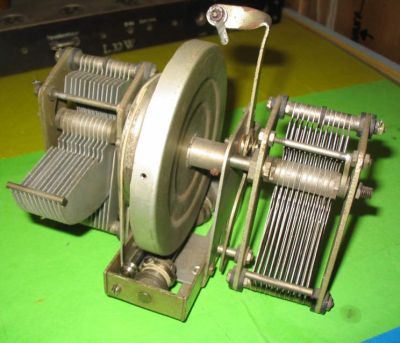 Il faut donc les dessouder en les repérant. Deux fils sont soudés sur le support de l'ampoule d'éclairage. Sur ce poste, le support a disparu, et il ne reste qu'un seul fil soudé, l'autre est en l'air. Il faudra remettre un support donc. Lorsque tous ces fils sont dessoudés, on dévisse les 3 vis de fixation du support des CV par le dessous (une des vis passe par le commutateur K2a et il y a une rondelle-cale entre le CV et le châssis qui est libre alors que les 2 autres sont soudées au support)