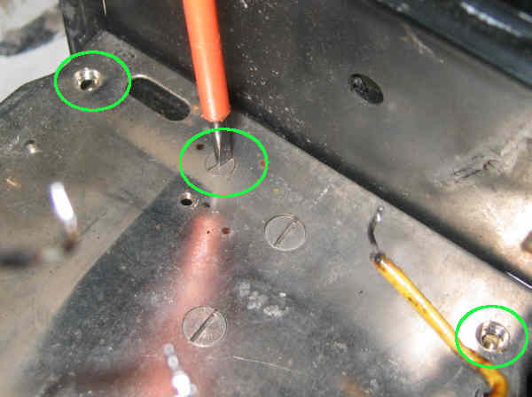 Avant de le refixer, je l'ai testé à vide, à l'aide d'un variac, réglé à 118V : Tout semble normal ! Bien, il n'y a plus qu'à glisser le transfo à sa place, de visser sans les serrer les 2 grandes vis et de visser 2 nouvelles vis qui tiendront plus tard la plaque d'isolement : Bien serrer ces 2 vis avant de serrer les 2 grandes vis, afin que le transfo soit bien en place Puis on peut ressouder les fils sur le transfo : Voilà tout est ok du côté de L1 et du transfo secteur ...
