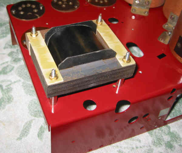 Il est fort possible que j'alimente ce poste directement en continu, cependant, il sera intéressant de l'essayer sur le secteur alternatif, en ajoutant un pont de Graetz simplement (dans la fiche secteur par exemple). Dans ce cas, la self d'égalisation s'impose. D'autre part, la self de filtrage HT est indispensable aussi si on ne veut pas récupérer une ronflette désagréable. Comme ces selfs sont absentes, je dois en refabriquer. Voici leur fabrication : Self S1/S2 J'ai mesuré la résistance des 2 enroulements sur la self du châssis #40324 : 11 et 15 ohm. D'autre part, en mesurant les dimensions du fer, j'en ai déduit les caractéristiques des 2 enroulements. La plus grande contrainte étant les dimensions mécaniques, ainsi que les entraxes des fixations (encore que je serais sûrement obligé de repercer le châssis ...) Voici les détails de fabrication 08 : perçage de 2 trous supplémentaires et aussi de ceux qui étaient taraudés, le montage se fera par boulonnage (dia perçage = 5 mm) 09 : repose de la self S1/S2 sur colonnettes : Self S3 Sur le châssis #40324, la self S3 présente une résistance de 300 ohm, ce qui indique une self assez standard, qui doit être prévue pour le courant HT du poste de l'ordre de 40 mA. 010 : fabrication de la self Voici les détails de fabrication 011 : repose de S3 notez les 4 pattes de fixation par dessus S1/S2 : ce sont des tôles I de 60 mm de long, contre-coudées. Notez aussi les écrous moletés qui permettront le démontage rapide au cas où ...