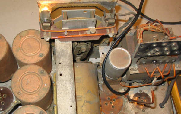 Le support octal est dévissé du châssis, mais il tient encore par les connexions.