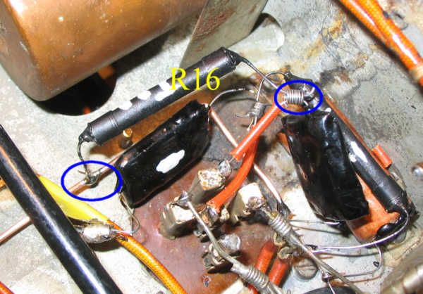 Ces deux condensateurs de filtrage sont montés sur le châssis : C25 avec une pièce métallique, et C26 avec une rondelle isolante car son pole - est reliée au -HT.