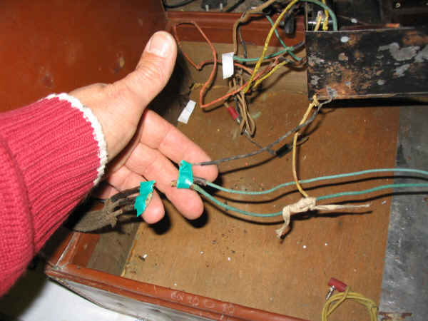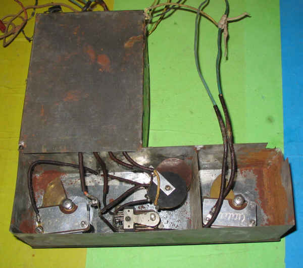 Dès maintenant, on peut lister ce qui va et ce qui ne va pas, ainsi que ce qu'il y a à faire : - la caisse est en assez bon état, une réparation du revêtement a d'ailleurs déjà été faite - tous les fils ont l'air pourri : l'isolant part en poussière, je sais déjà que j'aurai à les changer TOUS - Les 4 lampes sont à tester - Les composants sont à tester également, mais dans ce genre de poste, leur nombre est minimal ! - le HP et le cadre sont à vérifier, pour cela il va falloir démonter le couvercle Voilà, rien d'insurmontable, n'est-ce pas ?