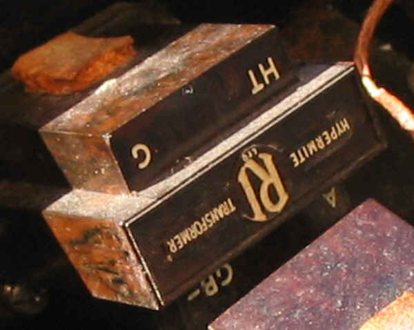 Comme bien souvent, pour relever le schéma, il faut commencer par démonter. Le fond du logement des piles est une feuille de carton noir qui tient par 4 vis près des 2 câbles souples allant au couvercle; de même, le châssis ne tient que par 2 vis; une fois toutes ces vis enlevées, le châssis vient : le mieux est de séparer le châssis; pour cela, les câbles doivent être coupés. Je l'ai fait au niveau des souplissos cachant les soudures, en les repérant. Tout d'abord, les fils venant du cadre : Ces fils vont dans un des compartiments du châssis, contenant un CV : puis le câble allant au HP : Voici le châssis tout seul : quelques photos de détail ... le compartiment des lampes: un des cadrans des CV : deux supports de lampes et des condos : un des transfos BF : un des CV : Les lampes méritent quelques photos. Visiblement, elles sont chauffées en 2V (c'est marqué dessus), il y a 3 triodes et une tétrode HF. Toutes ont un culot européen 4 broches. Voici une triode : En haut, l'insciption, peu visible sur cette photo : Indique : DOUBLE-TWO (c'est surement la marque) 22 (au mileu) 1X230 (en bas, c'est surement son type) 2V 0,2A (chauffage, à gauche) 50V-150V (à droite, tension plaque) Voici une reproduction du marquage : Vu l'intensité de chauffage, il semblerait bien que ce soit la triode de sortie BF, mais c'est à confirmer ... une autre triode, marquée Tungsram, LD210 2V 150V : la troisième triode, marquée PM1HF : enfin, la lampe écran , une 215SG : Les filaments des 4 lampes "sonnent" à l'ohmètre, ça ne veut pas dire qu'elles ne sont pas pompées, mais au moins, c'est déjà ça ...