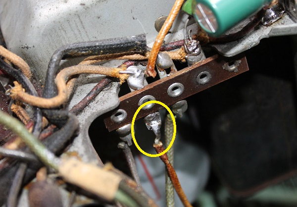 Pendant l'essai précédent, parfois, la réception disparaissait ... En fait, l'oscillation locale s'arrêtait. J'ai trouvé le fautif : le condo de liaison de grille oscillatrice de la 6SA7 avait une connexion qui touchait une connexion de masse ! J'ai donc changé le condo aux pattes plus rigides : Nouveau condo de laision de grille oscillatrice Terminé ! Voici une photo de l'autoradio remis en route avec le module bluetooth :