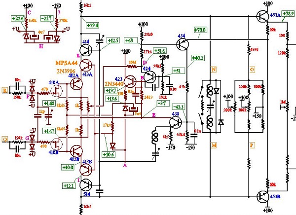 Vu que je n'ai pas trouvé le schéma du préampli sur le site Tekwiki, je vais le relever, afin d'essayer de déterminer le type des transistors qui manquent (car je n'ai pas l'info non plus)